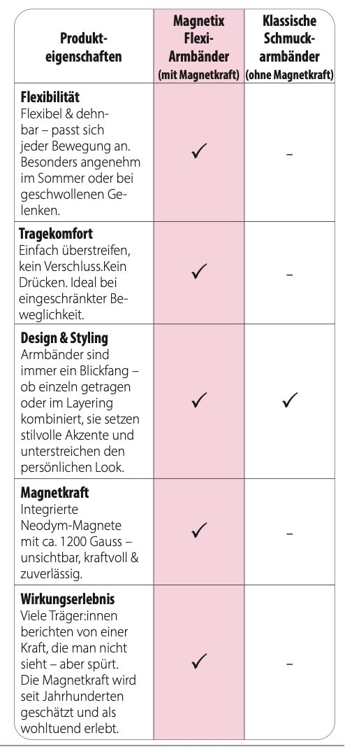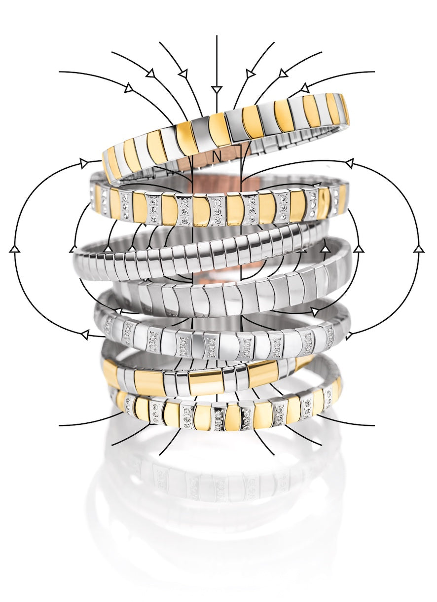 Unsere Produkte, wie zum Beispiel das Flexi-Armband, vereinen Stil mit einem zusätzlichen Plus: integrierte Magnete.