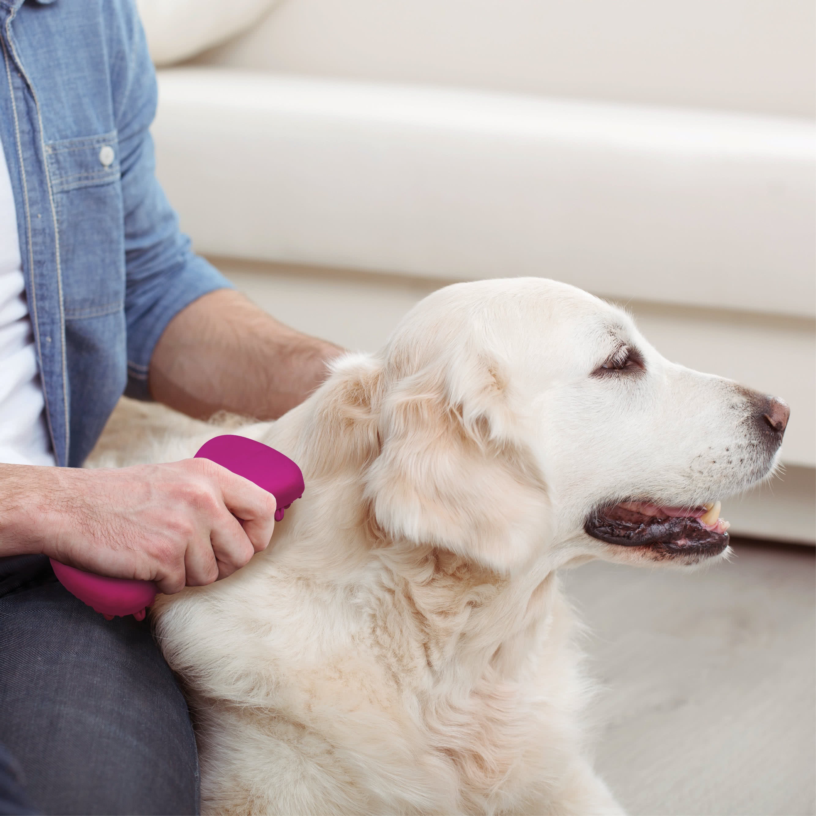 Außerdem können Sie mit dieser Bürste das Fell Ihres vierbeinigen Freundes pflegen und ihn gleichzeitig mit der Kraft der integrierten Neodym-Magnete verwöhnen. Das pflegeleichte Silikon lässt sich einfach mit warmer Seifenlauge reinigen. Die Form der Bürste liegt besonders gut in der Hand